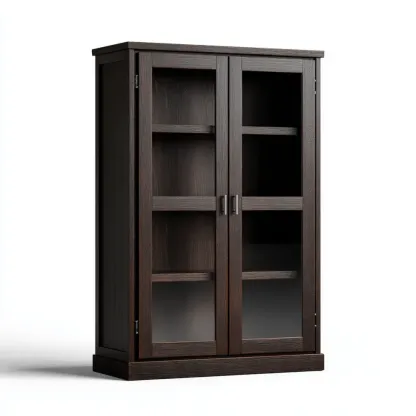 Materiale e ArtigianatoRealizzato in legno massello di alta qualità con una finitura marrone scuro che esalta le venature naturali del legno. Le ante sono dotate di vetro temperato per una maggiore sicurezza e resistenza.