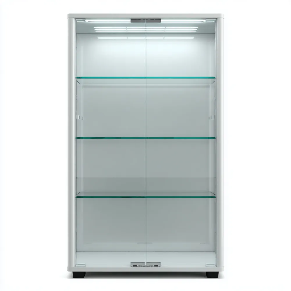 Materiale e LavorazioneRealizzata in vetro temperato di alta qualità con finiture bianche, questa vetrina combina estetica e funzionalità.